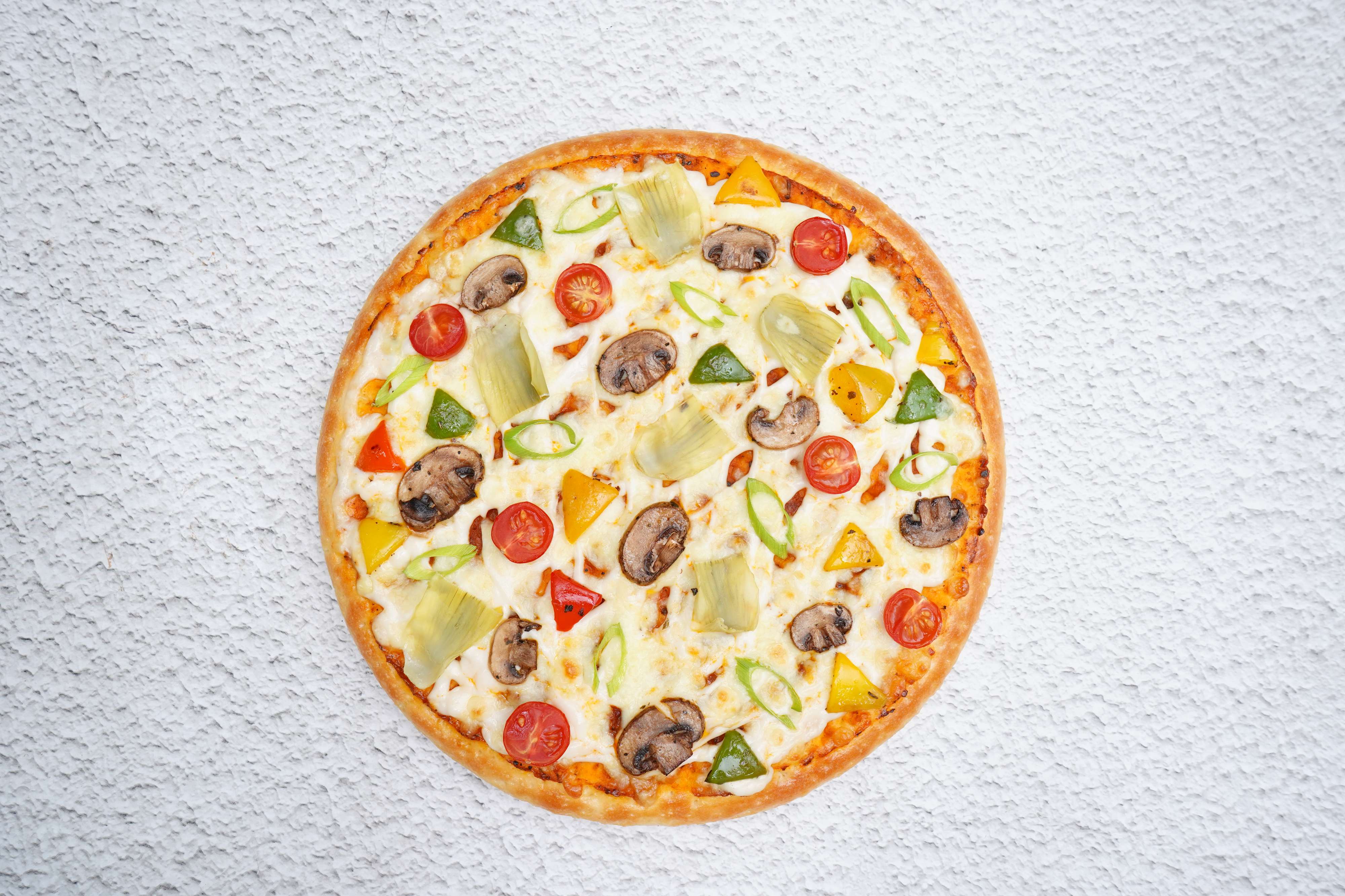 Roasted Mushroom, Leeks, Cherry Tomato, Roasted Bell Peppers, Artichoke, Mozzarella